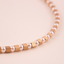 Collier, 950/-Gold, Akoyaperlen