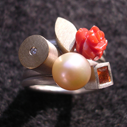 verspieltes Allerlei, 925/-Silber 750/-Gold, Koralle – Brillant – Mandaringranat – Perle