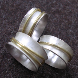 Verwicklungen, 925/-Silber 750/-Gold Silikonbänder